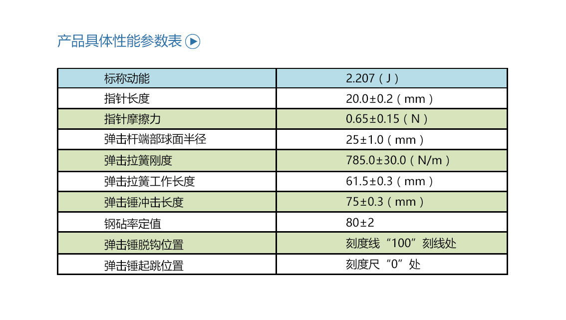 本仪器是系统标准能量2.207J,示值系统为指针直读式的中型回弹仪。